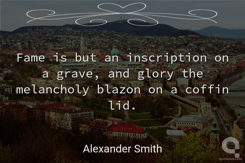 Fame is but an inscription on a grave, and glory the melancholy blazon on a coffin lid. Alexander Smith