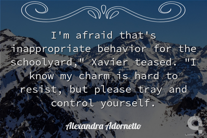 I'm afraid that's inappropriate behavior for the schoolyard," Xavier teased. "I know my charm is hard to resist, but please tray and control yourself. Alexandra Adornetto