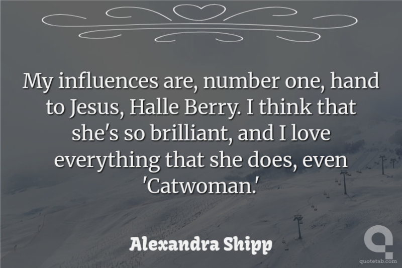 My influences are, number one, hand to Jesus, Halle Berry. I think that she's so brilliant, and I love everything that she does, even 'Catwoman.' Alexandra Shipp
