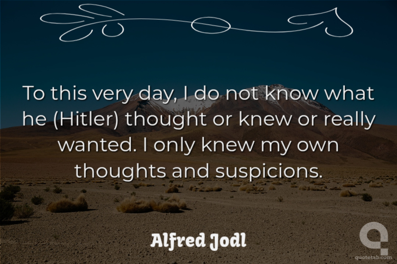 To this very day, I do not know what he (Hitler) thought or knew or really wanted. I only knew my own thoughts and suspicions. Alfred Jodl