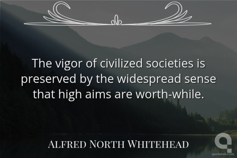 The vigor of civilized societies is preserved by the widespread sense that high aims are worth-while. Alfred North Whitehead