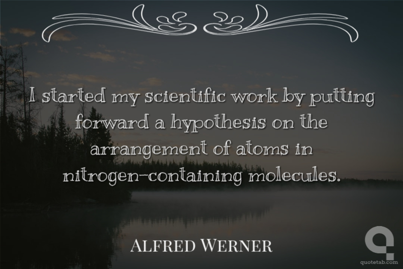 I started my scientific work by putting forward a hypothesis on the arrangement of atoms in nitrogen-containing molecules. Alfred Werner