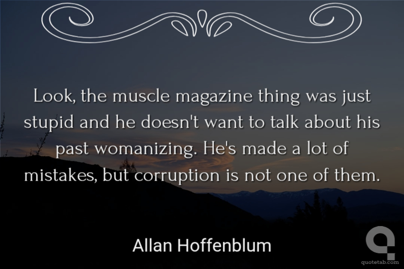 Look, the muscle magazine thing was just stupid and he doesn't want to talk about his past womanizing. He's made a lot of mistakes, but corruption is not one of them. Allan Hoffenblum