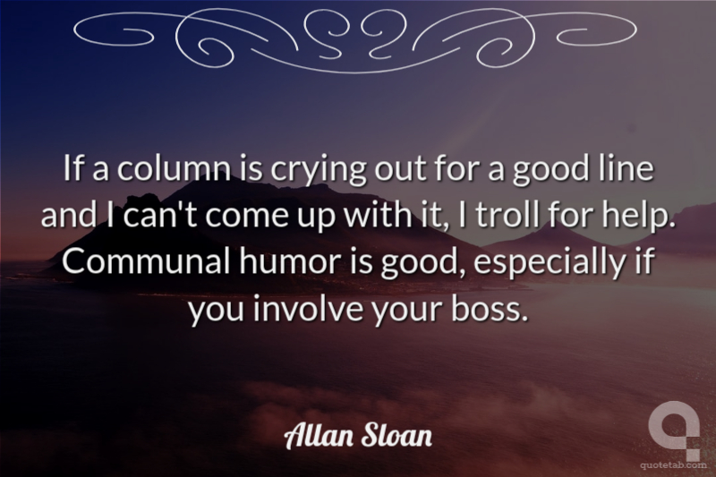 If a column is crying out for a good line and I can't come up with it, I troll for help. Communal humor is good, especially if you involve your boss. Allan Sloan