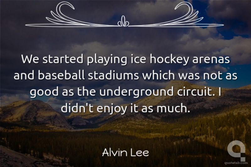 We started playing ice hockey arenas and baseball stadiums which was not as good as the underground circuit. I didn't enjoy it as much. Alvin Lee