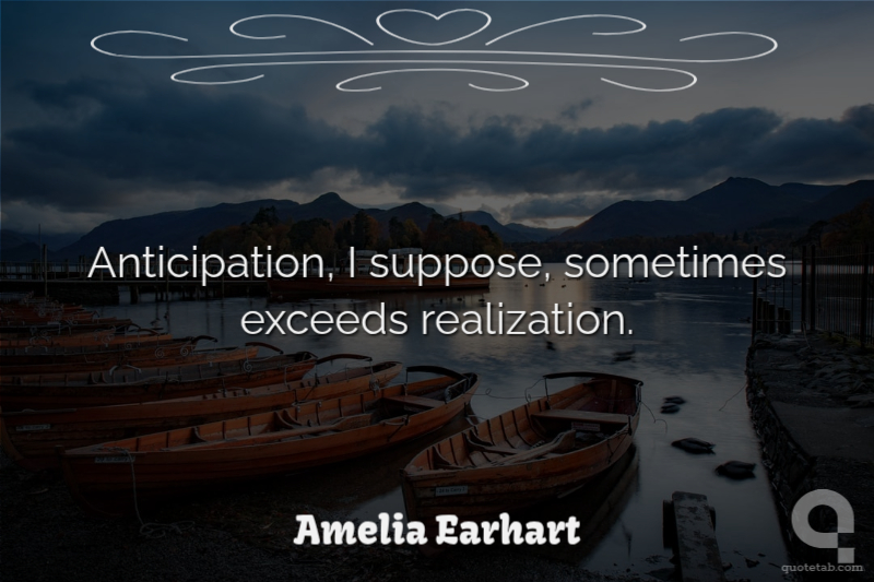 Anticipation, I suppose, sometimes exceeds realization. Amelia Earhart