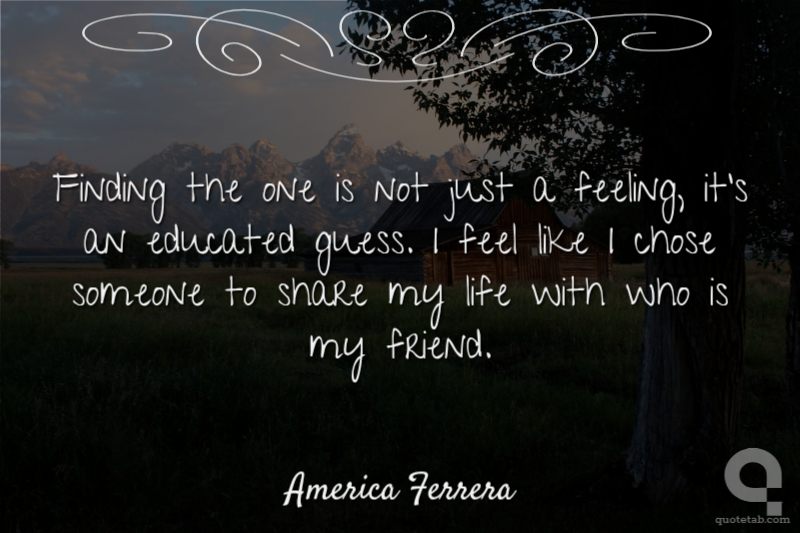 Finding the one is not just a feeling, it's an educated guess. I feel like I chose someone to share my life with who is my friend. America Ferrera