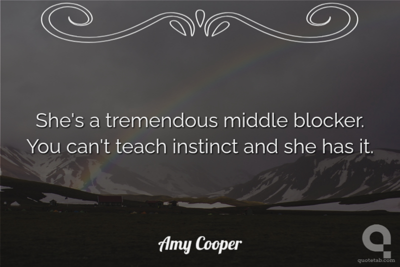 She's a tremendous middle blocker. You can't teach instinct and she has it. Amy Cooper