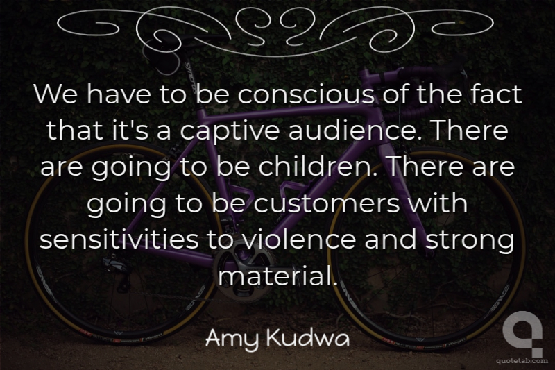 We have to be conscious of the fact that it's a captive audience. There are going to be children. There are going to be customers with sensitivities to violence and strong material. Amy Kudwa