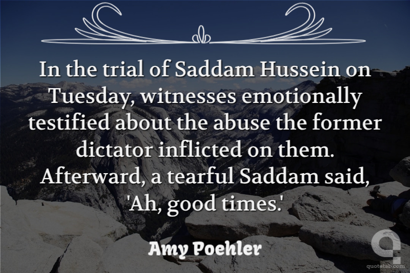 In the trial of Saddam Hussein on Tuesday, witnesses emotionally testified about the abuse the former dictator inflicted on them. Afterward, a tearful Saddam said, 'Ah, good times.' Amy Poehler