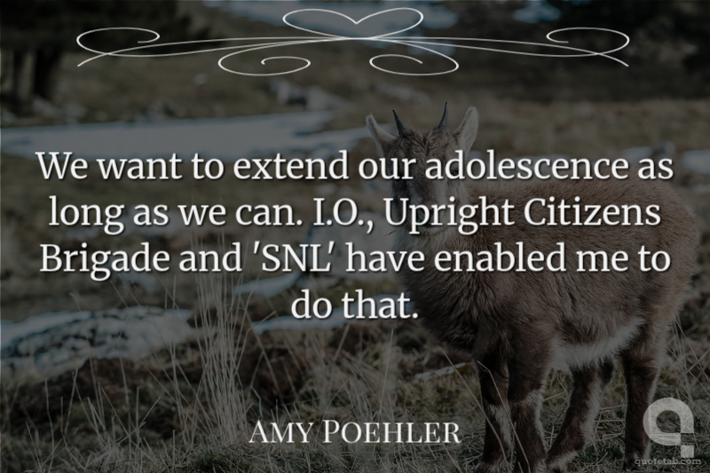 We want to extend our adolescence as long as we can. I.O., Upright Citizens Brigade and 'SNL' have enabled me to do that. Amy Poehler