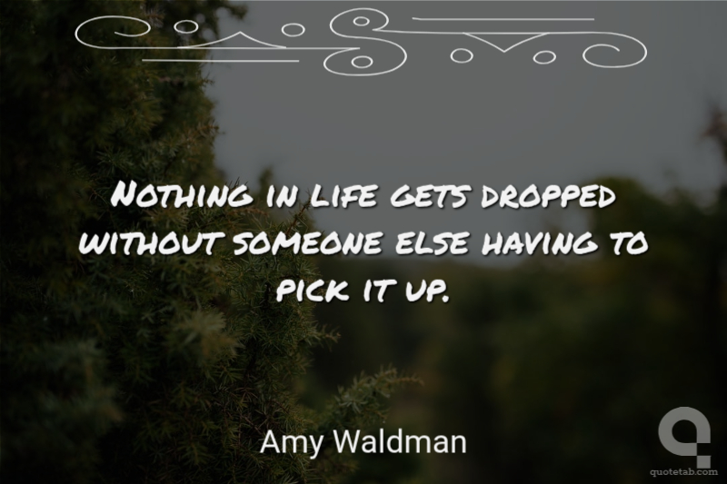 Nothing in life gets dropped without someone else having to pick it up. Amy Waldman