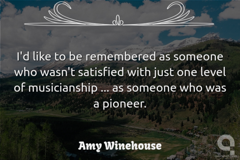 I'd like to be remembered as someone who wasn't satisfied with just one level of musicianship ... as someone who was a pioneer. Amy Winehouse