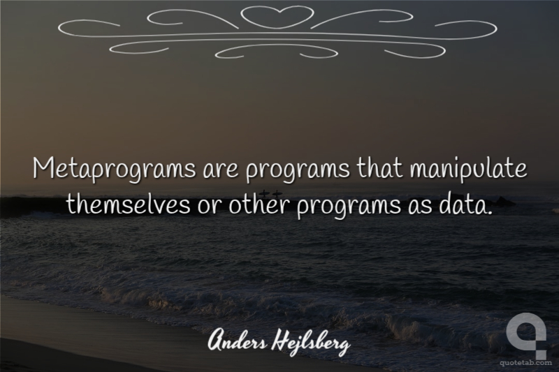 Metaprograms are programs that manipulate themselves or other programs as data. Anders Hejlsberg