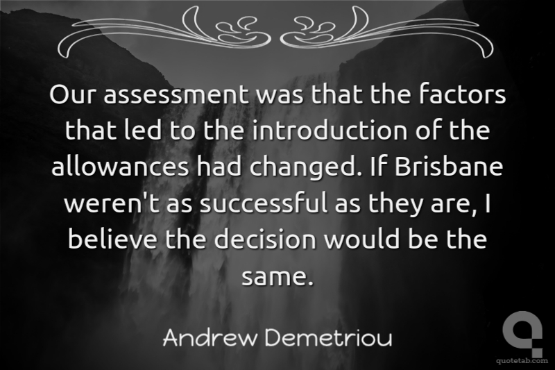 Our assessment was that the factors that led to the introduction of the allowances had changed. If Brisbane weren't as successful as they are, I believe the decision would be the same. Andrew Demetriou