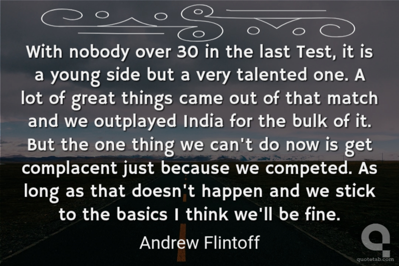 With nobody over 30 in the last Test, it is a young side but a very talented one. A lot of great things came out of that match and we outplayed India for the bulk of it. But the one thing we can't do now is get complacent just because we competed. As long as that doesn't happen and we stick to the basics I think we'll be fine. Andrew Flintoff