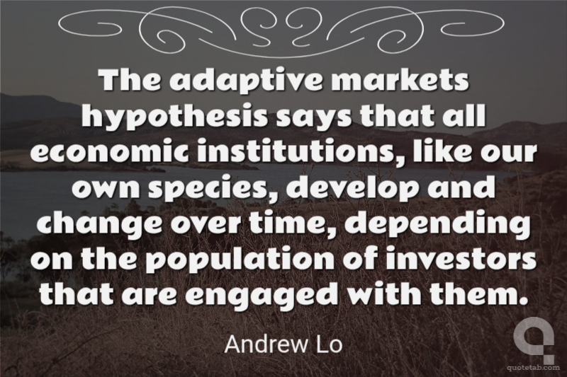 The adaptive markets hypothesis says that all economic institutions, like our own species, develop and change over time, depending on the population of investors that are engaged with them. Andrew Lo