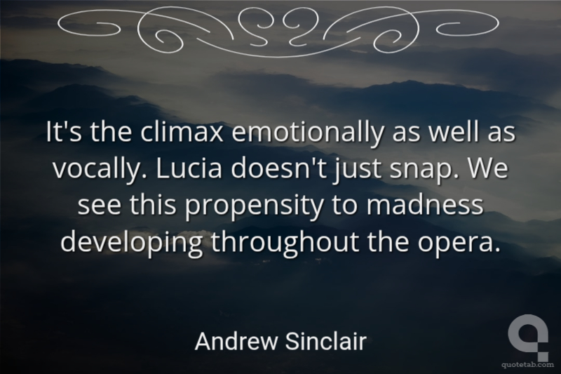 It's the climax emotionally as well as vocally. Lucia doesn't just snap. We see this propensity to madness developing throughout the opera. Andrew Sinclair