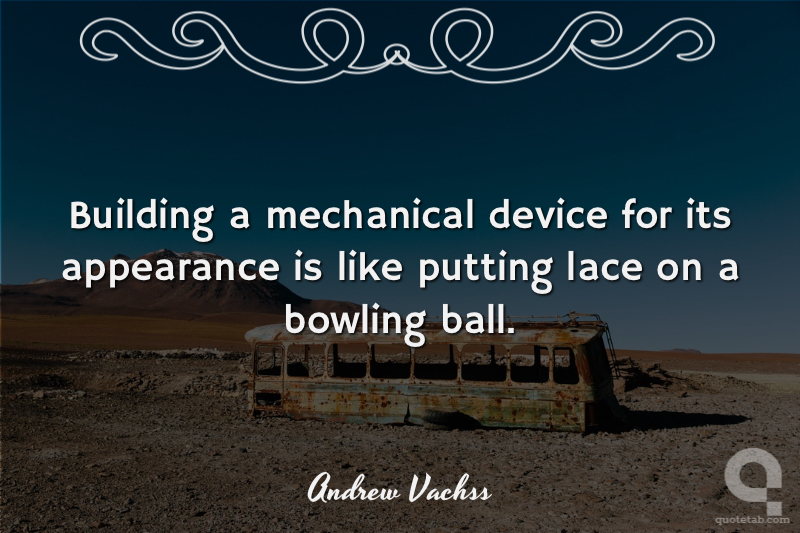 Building a mechanical device for its appearance is like putting lace on a bowling ball. Andrew Vachss