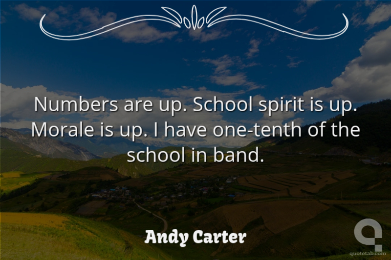 Numbers are up. School spirit is up. Morale is up. I have one-tenth of the school in band. Andy Carter