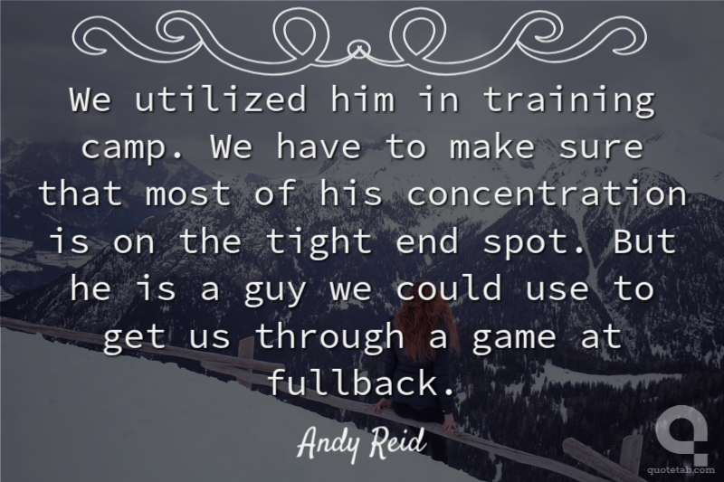 We utilized him in training camp. We have to make sure that most of his concentration is on the tight end spot. But he is a guy we could use to get us through a game at fullback. Andy Reid