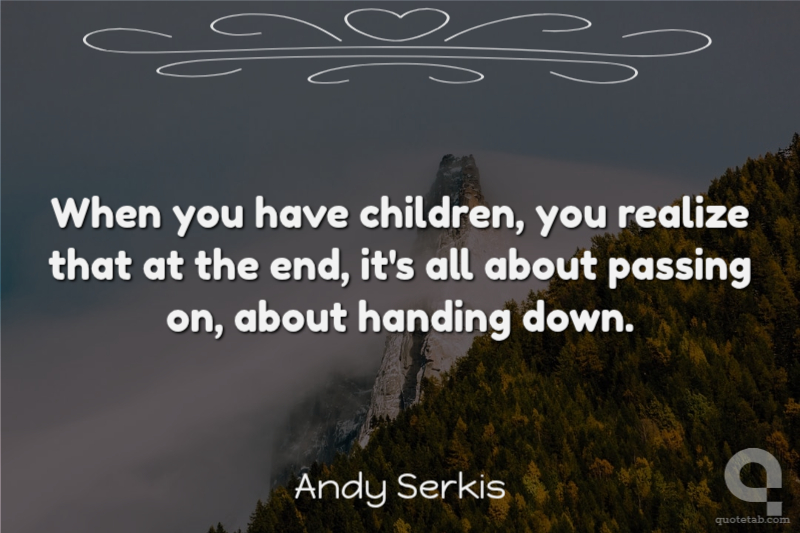 When you have children, you realize that at the end, it's all about passing on, about handing down. Andy Serkis