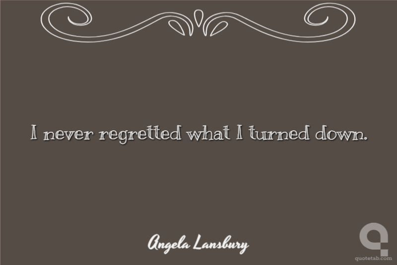 Angela Lansbury I never regretted what I turned down.