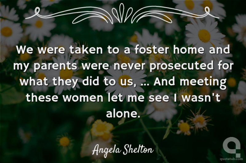 We were taken to a foster home and my parents were never prosecuted for what they did to us, ... And meeting these women let me see I wasn't alone. Angela Shelton