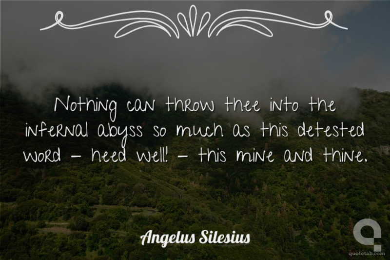 Nothing can throw thee into the infernal abyss so much as this detested word - heed well! - this mine and thine. Angelus Silesius