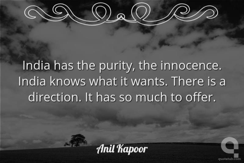 India has the purity, the innocence. India knows what it wants. There is a direction. It has so much to offer. Anil Kapoor