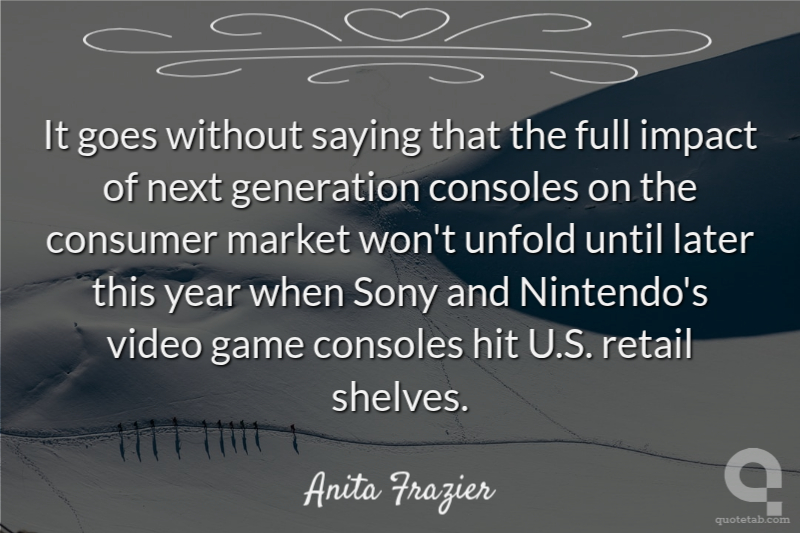 It goes without saying that the full impact of next generation consoles on the consumer market won't unfold until later this year when Sony and Nintendo's video game consoles hit U.S. retail shelves. Anita Frazier