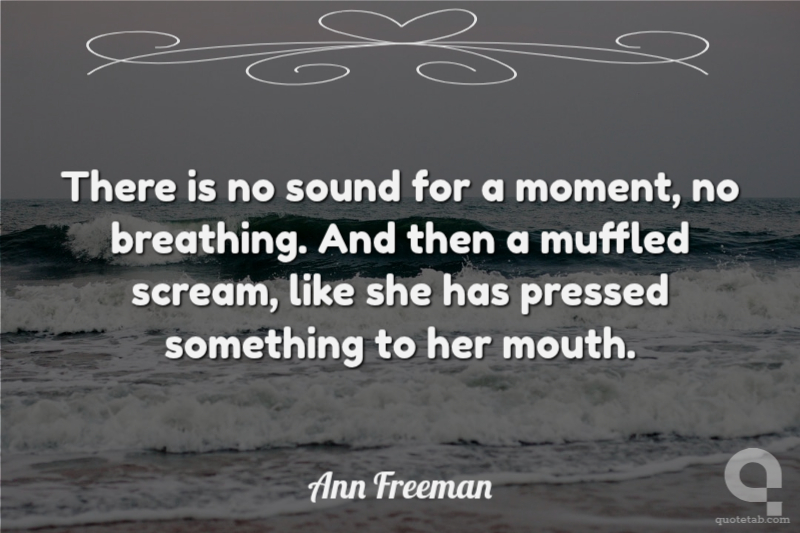 There is no sound for a moment, no breathing. And then a muffled scream, like she has pressed something to her mouth. Ann Freeman