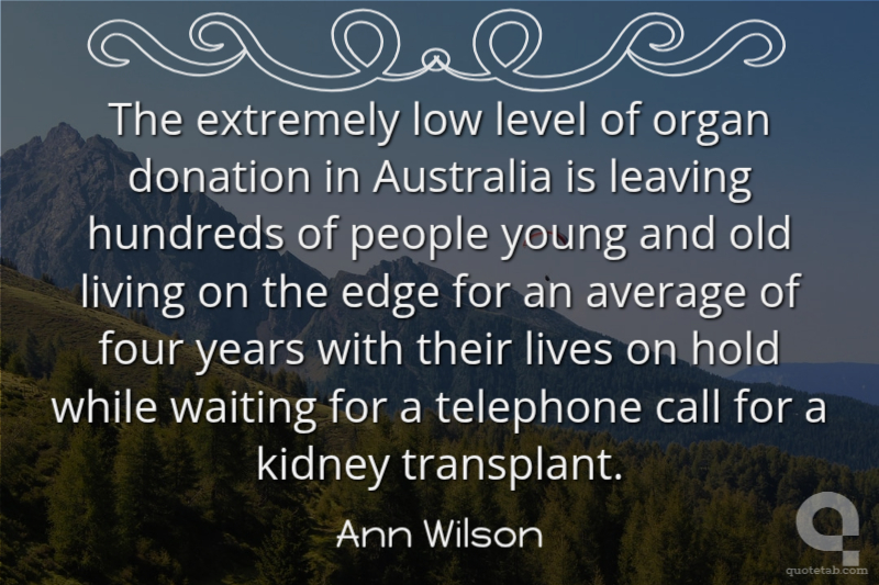 The extremely low level of organ donation in Australia is leaving hundreds of people young and old living on the edge for an average of four years with their lives on hold while waiting for a telephone call for a kidney transplant. Ann Wilson