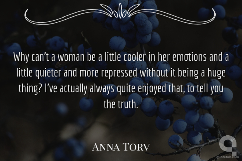 Why can't a woman be a little cooler in her emotions and a little quieter and more repressed without it being a huge thing? I've actually always quite enjoyed that, to tell you the truth. Anna Torv