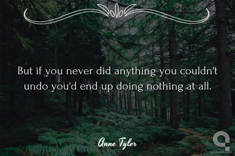 But if you never did anything you couldn't undo you'd end up doing nothing at all. Anne Tyler