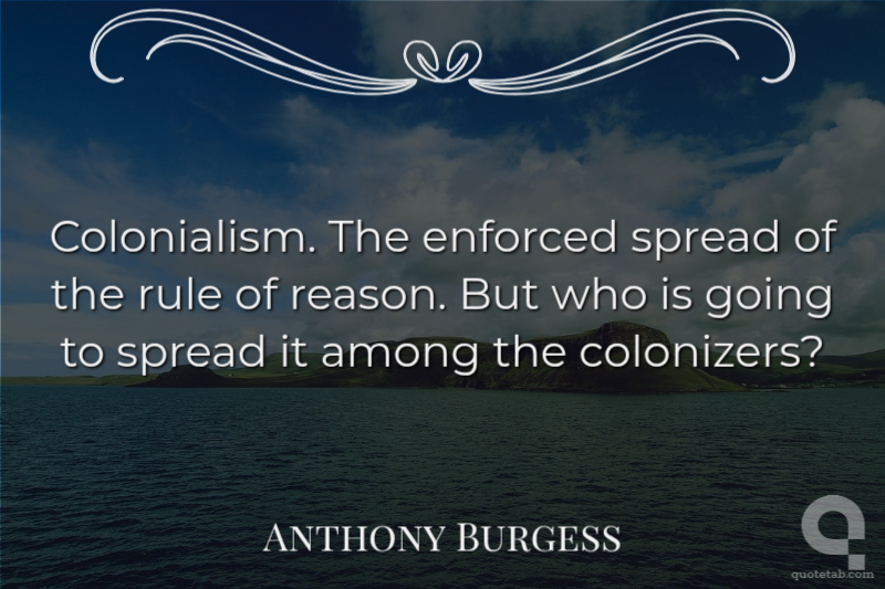 Colonialism. The enforced spread of the rule of reason. But who is going to spread it among the colonizers? Anthony Burgess