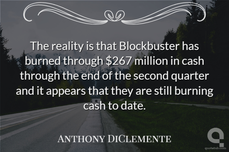 The reality is that Blockbuster has burned through $267 million in cash through the end of the second quarter and it appears that they are still burning cash to date. Anthony DiClemente