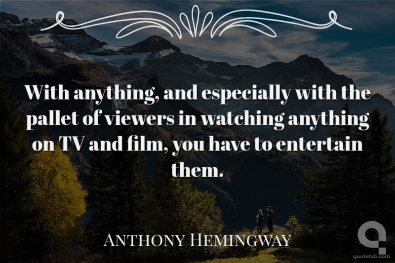 Anthony Hemingway With anything, and especially with the pallet of viewers in watching anything on TV and film, you have to entertain them.