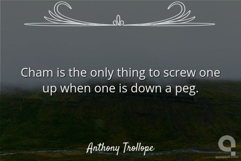 Cham is the only thing to screw one up when one is down a peg. Anthony Trollope