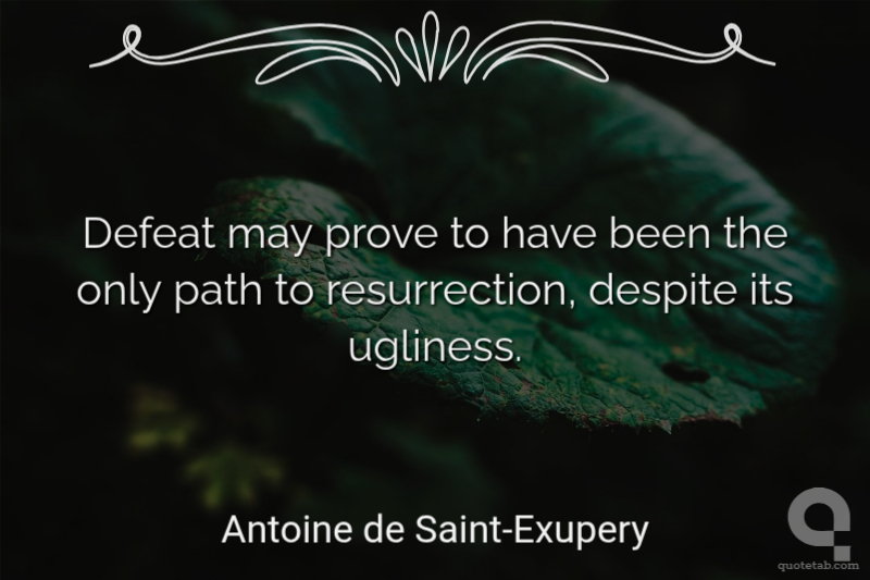 Defeat may prove to have been the only path to resurrection, despite its ugliness. Antoine de Saint-Exupery