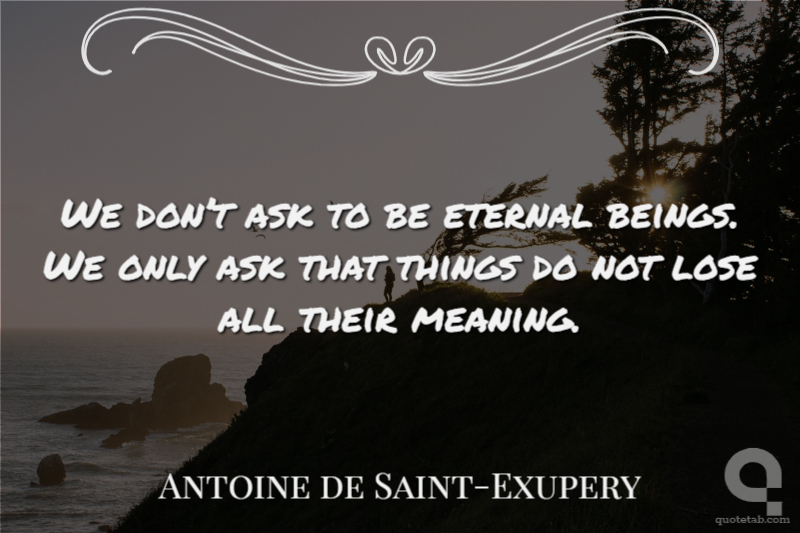 We don’t ask to be eternal beings. We only ask that things do not lose all their meaning. Antoine de Saint-Exupery