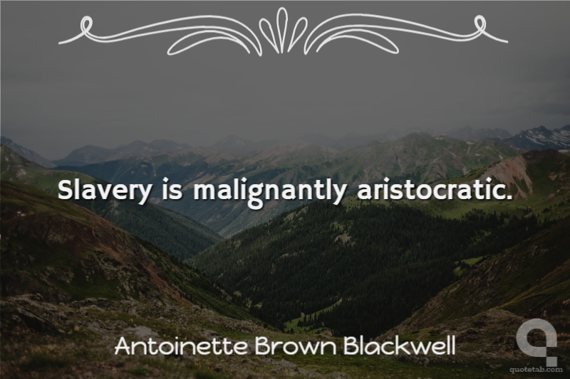Slavery is malignantly aristocratic. Antoinette Brown Blackwell