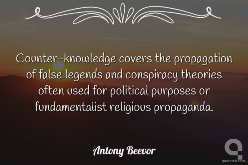 Counter-knowledge covers the propagation of false legends and conspiracy theories often used for political purposes or fundamentalist religious propaganda. Antony Beevor