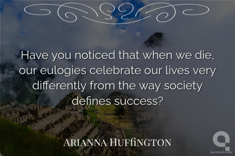 Have you noticed that when we die, our eulogies celebrate our lives very differently from the way society defines success? Arianna Huffington