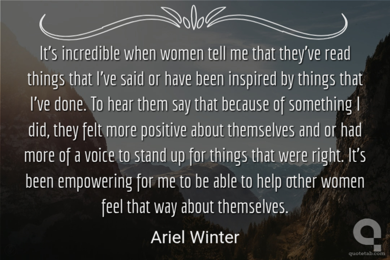 It's incredible when women tell me that they've read things that I've said or have been inspired by things that I've done. To hear them say that because of something I did, they felt more positive about themselves and or had more of a voice to stand up for things that were right. It's been empowering for me to be able to help other women feel that way about themselves. Ariel Winter