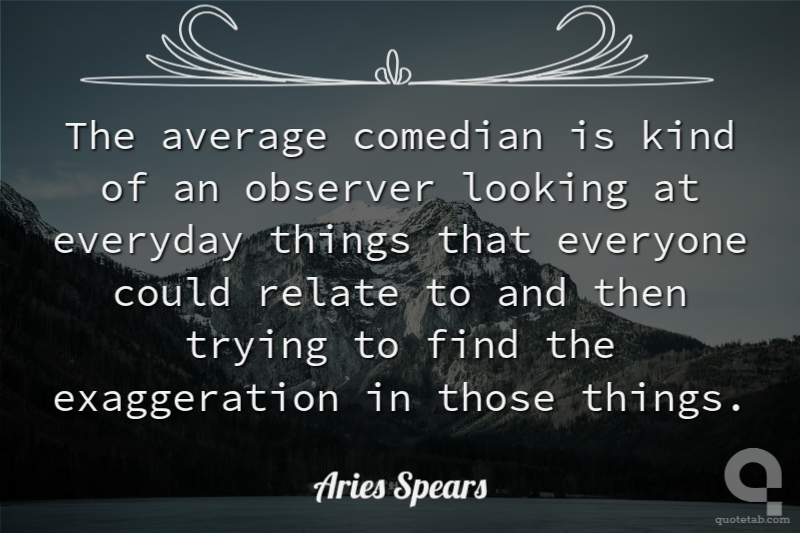 The average comedian is kind of an observer looking at everyday things that everyone could relate to and then trying to find the exaggeration in those things. Aries Spears