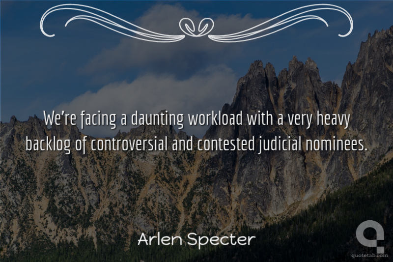 We're facing a daunting workload with a very heavy backlog of controversial and contested judicial nominees. Arlen Specter