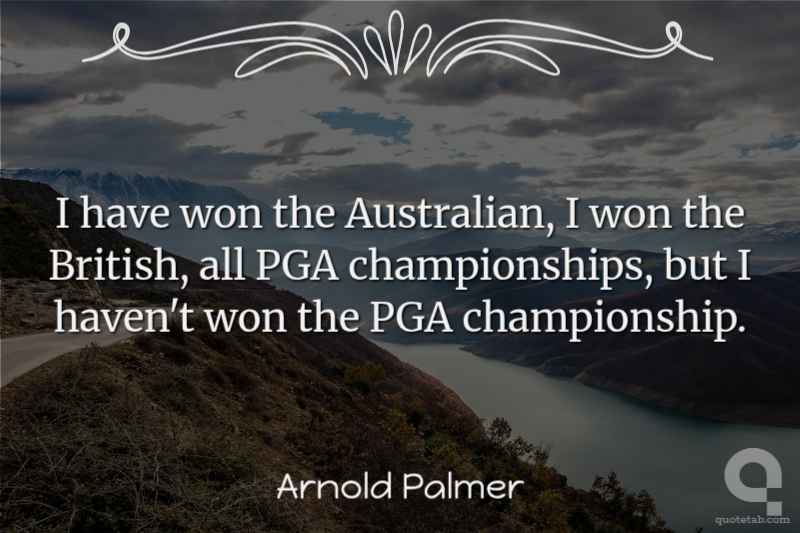 I have won the Australian, I won the British, all PGA championships, but I haven't won the PGA championship. Arnold Palmer