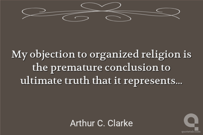 My objection to organized religion is the premature conclusion to ultimate truth that it represents... Arthur C. Clarke