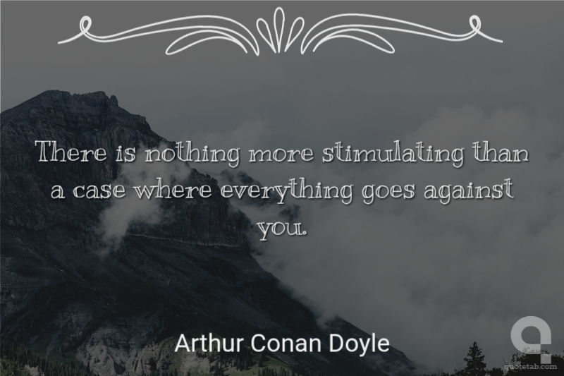 There is nothing more stimulating than a case where everything goes against you. Arthur Conan Doyle